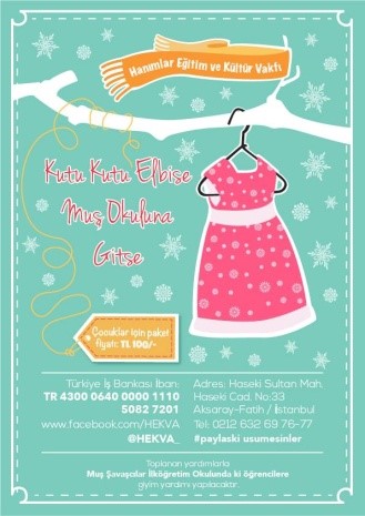 İlk olarak, 2015 yılı Şubat ayında çeşitli kurum ve kuruluşların sponsorlukları ve kişisel bağışlarla elde edilen gelirle,Muş-Savaşçılar İlkokulu öğrencilerine “Kutu Kutu Elbise Muş Okuluna Gitse” kampanyası ile kıyafet, ayakkabı ve eğitim araç-gereçleri temin edilmiştir.